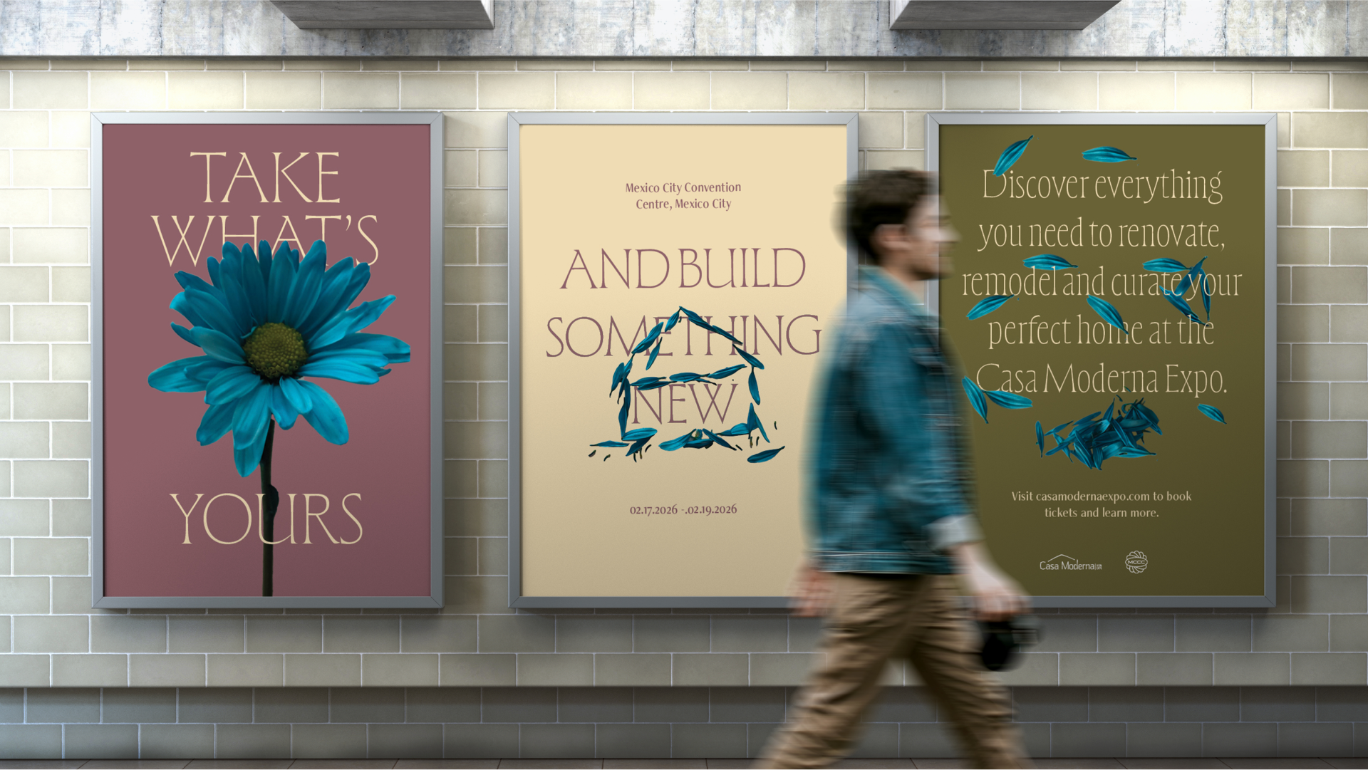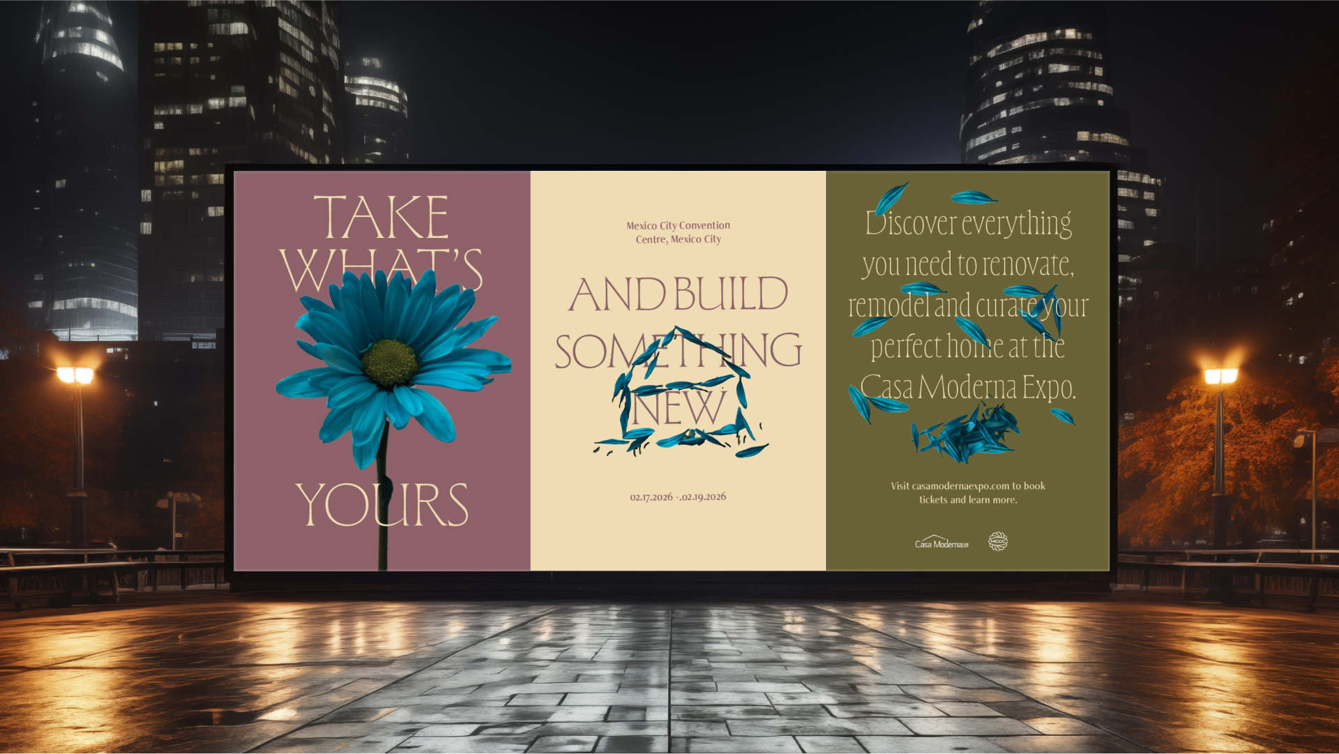The Casa Moderna Expo is a 3-day event in Mexico City that attracts homeowners and DIY enthusiasts excited about the latest trends in home improvement. The expo requested an off-screen visual be developed as well as an engaging headline. Flowers inspired by the artwork of Diego Rivera was used to develop the design.