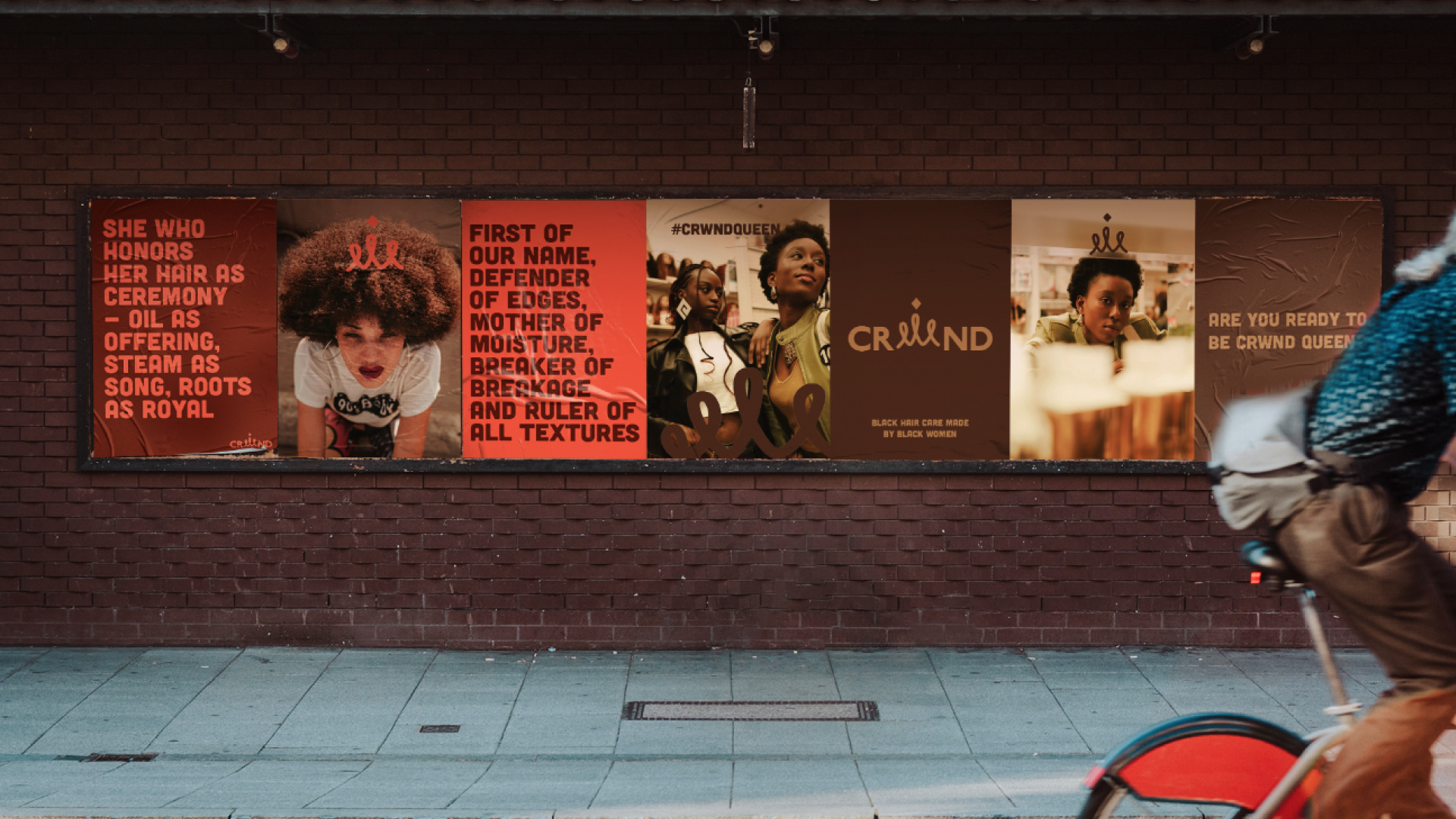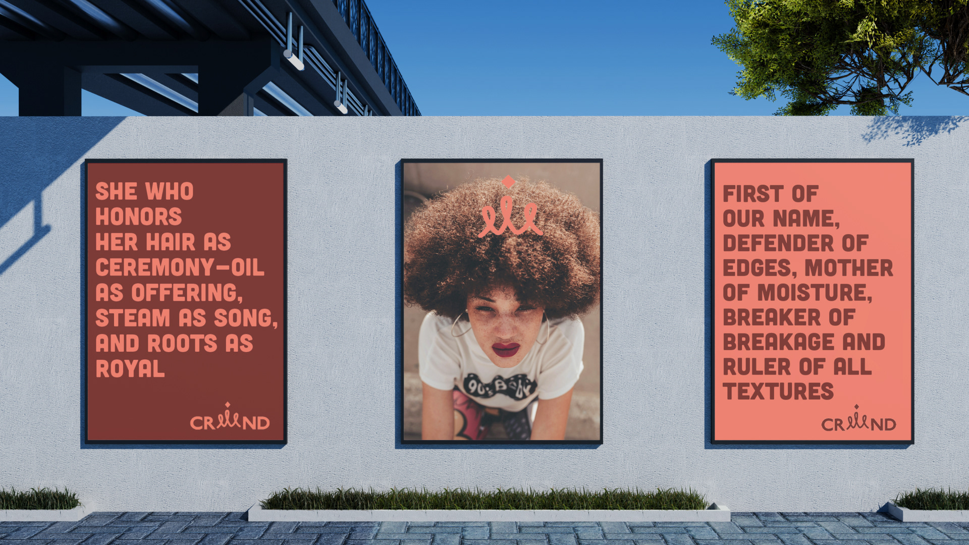 This rebrand for a natural hair care brand shifts the focus from supply chain quality to cultural resonance and care. Designed with women woman of color at its core, the identity centers on community, honesty, and staying rooted in who you are. From transforming the tone of voice, brand name and identity, every element honors the beauty of textured hair and the community it represents. CRWND isn’t just about hair products; it’s about preserving roots and celebrating royalty.